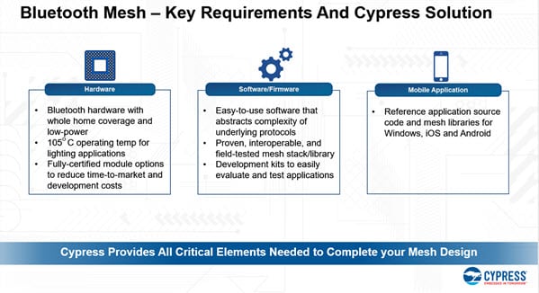 Figure 3: Cypress is uniquely positioned to provide the necessary hardware, software, and apps to enable Bluetooth mesh networks. (Source: Cypress)